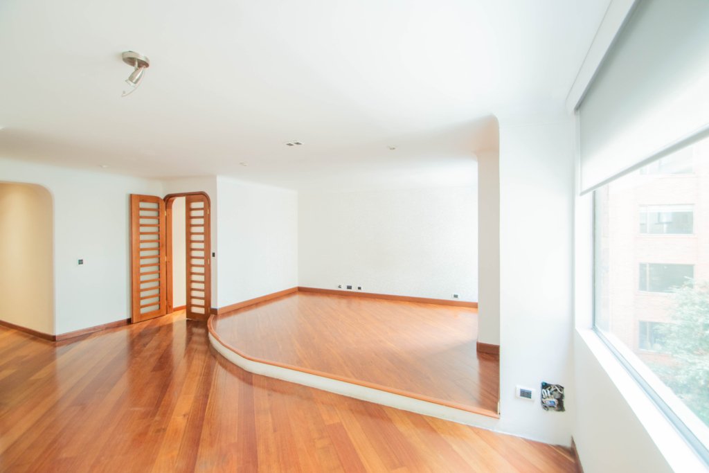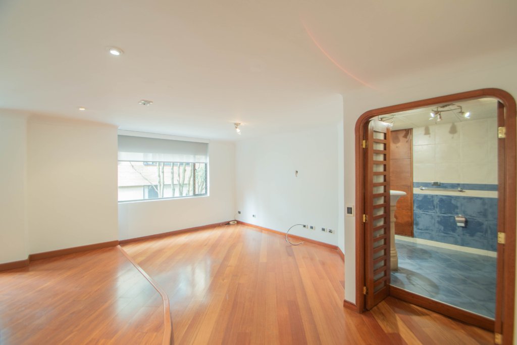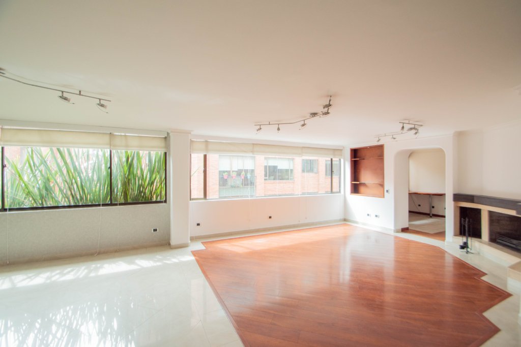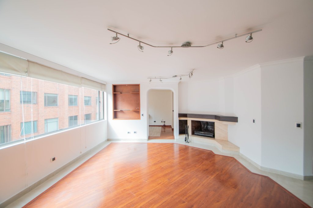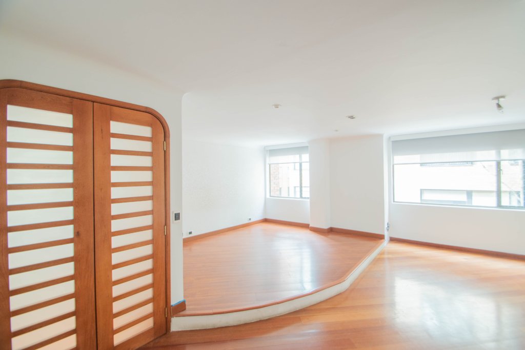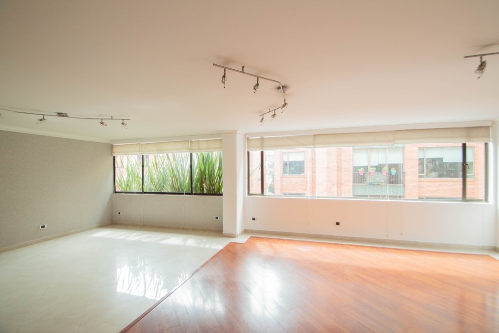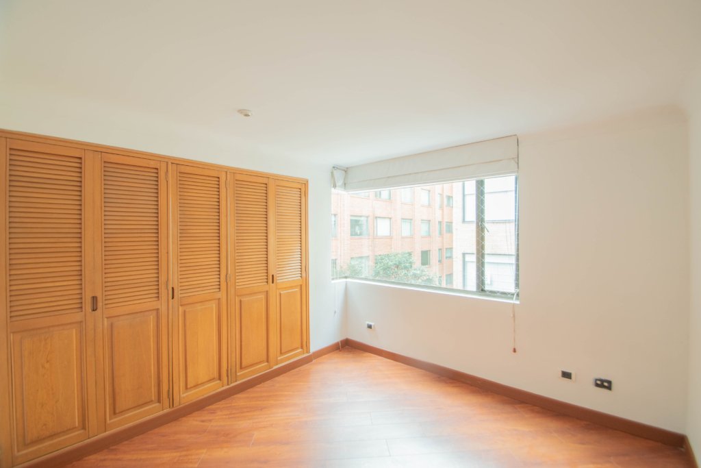 Apartamento de dos alcobas EN ARRIENDO DE 175 m², con vista interior. Muy iluminado, 1 baño, cocina abierta con barra, sala-comedor y zona de lavandería. Una amplia alcoba principal con working clóset además de ventilación natural. Pisos laminados y puerta blindada con chapa de seguridad. Incluye dos garajes cubiertos independientes. El edificio ofrece seguridad privada 24/7, garaje para visitantes ¡Un espacio perfecto para vivir cómodamente y con seguridad! Cerca a la carrera 15, parque country club country, centros comerciales, parques, ciclorruta, transporte público.
