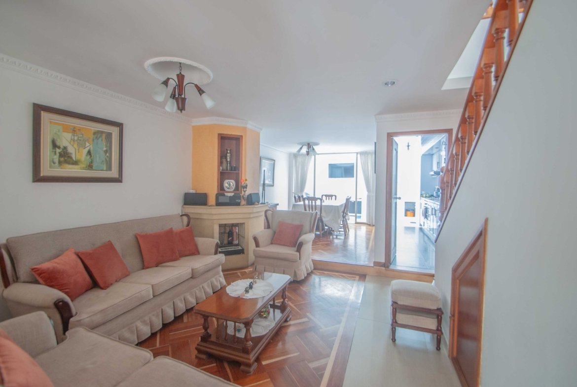 Hermosa casa bifamiliar en perfecto estado, ubicada en el exclusivo barrio Cedro Golf, con 134,80 m² construidos. Ofrece amplios y luminosos espacios, ideal para disfrutar en familia. En el primer nivel, cuenta con parqueadero para 4 carros, acogedora sala con chimenea, comedor independiente, baño social, cocina integral a gas, zona de lavandería y un patio cubierto. El segundo nivel ofrece tres cómodas habitaciones (dos con closet y la principal con walking closet), dos baños, estudio y hall de habitaciones. Ubicación estratégica, con excelentes vías de acceso por la Carrera 7 y Calle 147. ¡Oportunidad perfecta para vivir o invertir en una de las zonas más exclusivas!